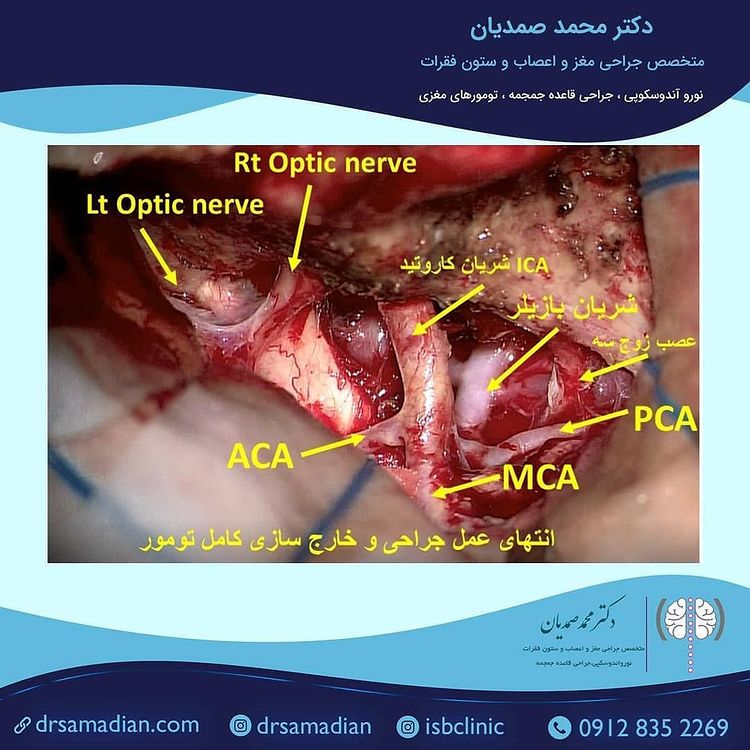 بیمار خانم ۶۸ ساله که با مشکل کاهش بینایی که از یک ماه قبل شروع شده بود به مطب ارجاع داده شدند پس از بررسی های انجام شده با تشخیص مننژیوم کلینوئیدال کاندید عمل جراح شدند، عمل جراحی به صورت میکروسکوپیک انجام شد و تومور به صورت کامل خارج گردید و عصب اپتیک و شریان ها حفظ شدند و بینایی بیمار بهبود نسبی یافت و بیمار با حال عمومی مساعد ترخیص گردید.